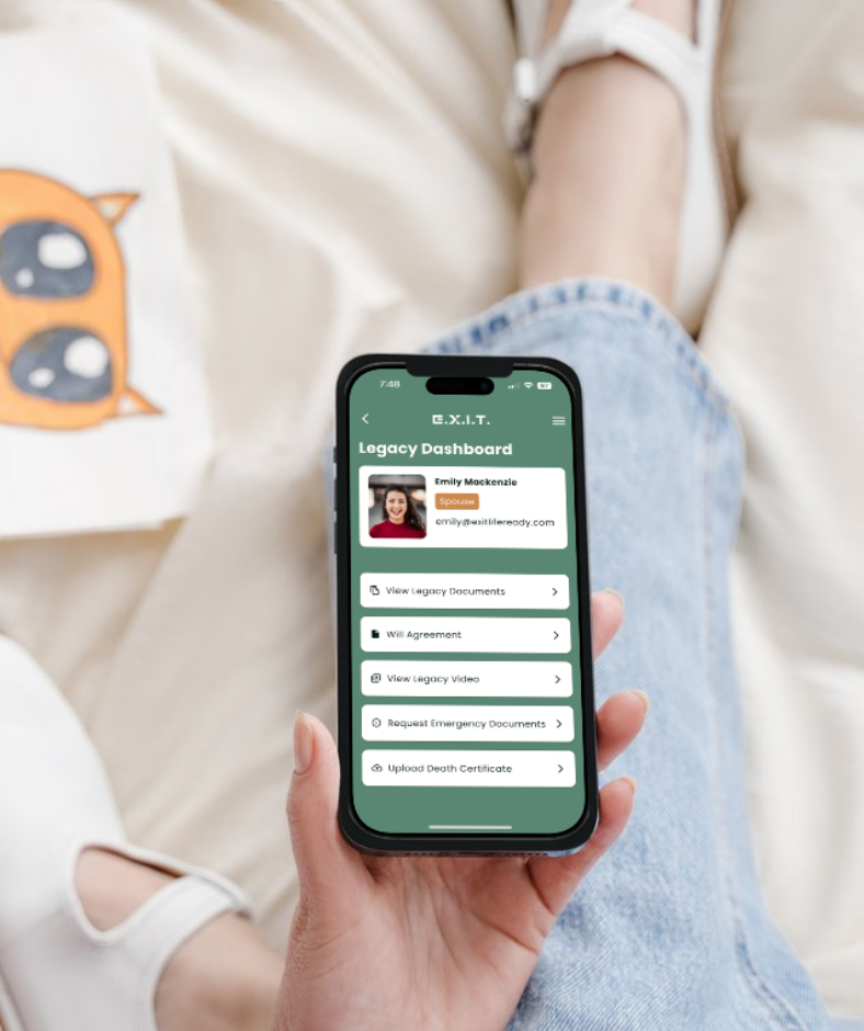 EXIT Life Ready APP is essentially an “in all things, and in case of emergency” caregiver, substitute decision maker, and legacy planning app. An all-in-one digital vault to keep secure documents. SECURE. While also providing resources on advanced care planning, estate planning, Designated decision makers, legacy planning, and final wishes. EXIT Life Ready APP offers a convenient and secure way to keep personal documents safe and accessible when you need them most.